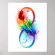 Artistically drawn infinity symbol with beautiful rainbow feather on white background. Tattoo style.
