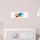 Artistically drawn infinity symbol with beautiful rainbow feather on white background. Tattoo style.