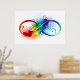 Artistically drawn infinity symbol with beautiful rainbow feather on white background. Tattoo style.