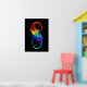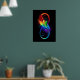 Artistically drawn infinity symbol with beautiful rainbow feather on white background. Tattoo style.