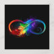 Artistically drawn infinity symbol with beautiful rainbow feather on white background. Tattoo style.