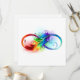 Artistically drawn infinity symbol with beautiful rainbow feather on white background. Tattoo style.