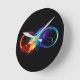 Infinity Symbol with Rainbow Feather Round Clock