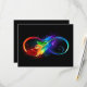 Artistically drawn infinity symbol with beautiful rainbow feather on white background. Tattoo style.