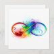 Artistically drawn infinity symbol with beautiful rainbow feather on white background. Tattoo style.