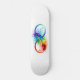 Artistically drawn infinity symbol with beautiful rainbow feather on white background. Tattoo style.