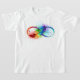 Artistically drawn infinity symbol with beautiful rainbow feather on white background. Tattoo style.