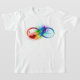Artistically drawn infinity symbol with beautiful rainbow feather on white background. Tattoo style.