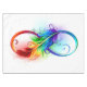 Artistically drawn infinity symbol with beautiful rainbow feather on white background. Tattoo style.