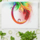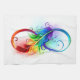Artistically drawn infinity symbol with beautiful rainbow feather on white background. Tattoo style.