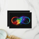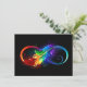 Artistically drawn infinity symbol with beautiful rainbow feather on white background. Tattoo style.