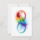 Artistically drawn infinity symbol with beautiful rainbow feather on white background. Tattoo style.