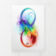 Artistically drawn infinity symbol with beautiful rainbow feather on white background. Tattoo style.