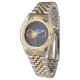 The watch is very nice, the picture is great and the watch looks like quality. The only problem I am having with it is that it is a little too large, and I also can't figure out how to open the clasp. No directions came with it. Very good. The printing is perfect and the watch keeps good time.