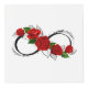 infinity symbol with red roses and black stalks on a white background. Design with roses. Tattoo style. Gothic style. Tribal graphics. Style sketch.