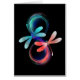 Infinity painted in neon, red and green paint, decorated with two luminous, contrasting dragonflies with glowing, transparent wings on black background. Glowing dragonfly.