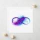 Infinity symbol with a beautiful feather painted in purple and blue bright colours on white background.