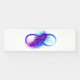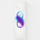 Infinity symbol with a beautiful feather painted in purple and blue bright colours on white background.
