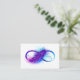 Infinity symbol with a beautiful feather painted in purple and blue bright colours on white background.