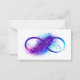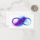 Infinity symbol with a beautiful feather painted in purple and blue bright colours on white background.