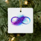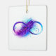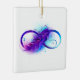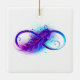 Infinity symbol with a beautiful feather painted in purple and blue bright colours on white background.