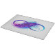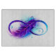 Infinity symbol with a beautiful feather painted in purple and blue bright colours on white background.