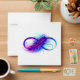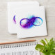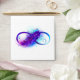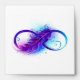 Infinity symbol with a beautiful feather painted in purple and blue bright colours on white background.