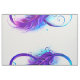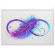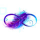 Infinity symbol with a beautiful feather painted in purple and blue bright colors on white background.