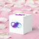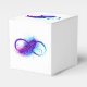 Infinity symbol with a beautiful feather painted in purple and blue bright colours on white background.