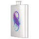 Infinity symbol with a beautiful feather painted in purple and blue bright colours on white background.