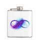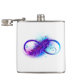 Infinity symbol with a beautiful feather painted in purple and blue bright colours on white background.