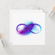 Infinity symbol with a beautiful feather painted in purple and blue bright colours on white background.