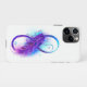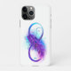 Infinity symbol with a beautiful feather painted in purple and blue bright colours on white background.