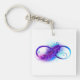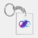 Infinity symbol with a beautiful feather painted in purple and blue bright colours on white background.
