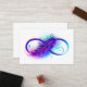 Infinity symbol with a beautiful feather painted in purple and blue bright colours on white background.