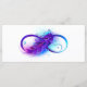 Infinity symbol with a beautiful feather painted in purple and blue bright colours on white background.
