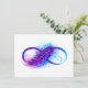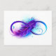 Infinity symbol with a beautiful feather painted in purple and blue bright colors on white background.