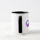 Infinity symbol with a beautiful feather painted in purple and blue bright colours on white background.