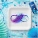 Infinity symbol with a beautiful feather painted in purple and blue bright colors on white background.