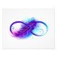 Infinity symbol with a beautiful feather painted in purple and blue bright colours on white background.