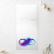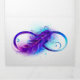 Infinity symbol with a beautiful feather painted in purple and blue bright colours on white background.