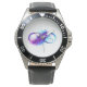 My husband loves the watch, he likes the dial, the graphics, the band, and it keeps perfect time.