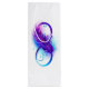 Infinity symbol with a beautiful feather painted in purple and blue bright colours on white background.