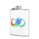 The flask itself is fine. It’s a cheap flask, obviously bought in bulk, however am prepared to overlook that. Given that it is a personalized item, I would have liked to have seen gift boxing instead of the generic packaging. Terrible printing, and/or quality. It’s a cheap, tacky vinyl. It is not cut straight and is also applied in a way that it is overhanging the bottom, causing the glue to catch on items and it will eventually roll and tear, damaging the wrap.