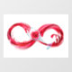 Infinity symbol of continuous stream of red wine pouring into glass wine glass on white background.