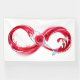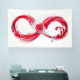 Infinity symbol of continuous stream of red wine pouring into glass wine glass on white background.