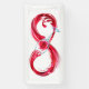 Infinity symbol of continuous stream of red wine pouring into glass wine glass on white background.