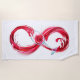 Infinity symbol of continuous stream of red wine pouring into glass wine glass on white background.