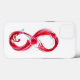 Infinity symbol of continuous stream of red wine pouring into glass wine glass on white background.