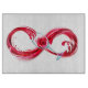 Infinity symbol of continuous stream of red wine pouring into glass wine glass on white background.